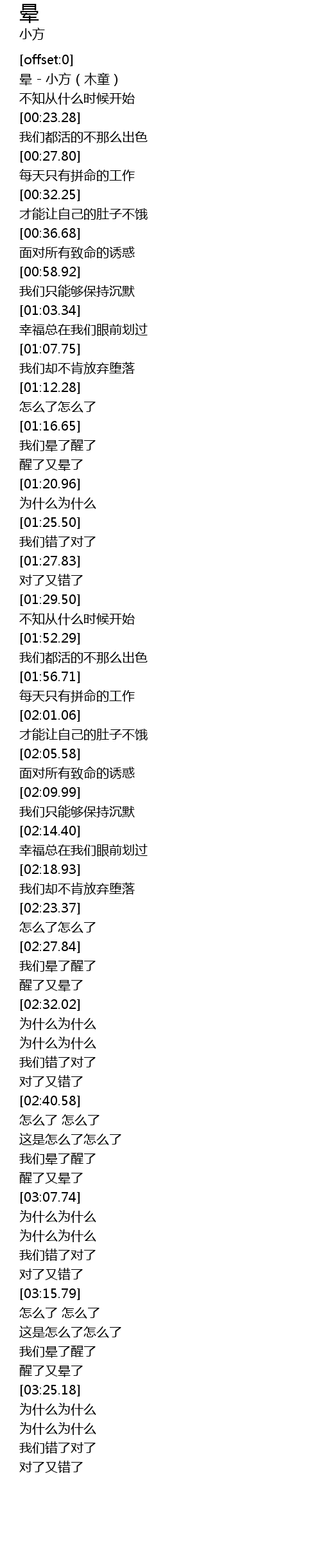 | [00:00.43] | 晕 - 小方(木童) |