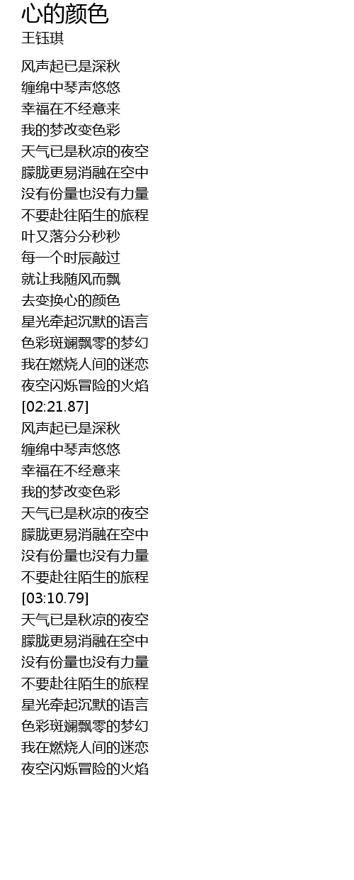 | [02:05.20] | 色彩斑斓飘零的梦幻 |