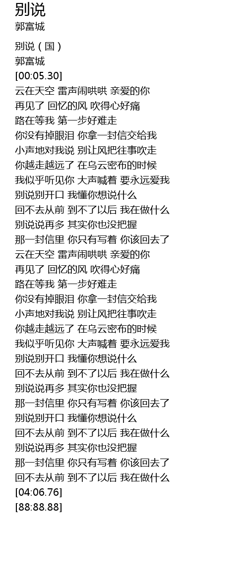 | [03:41.30] | 别说说再多 其实你也没把握 |