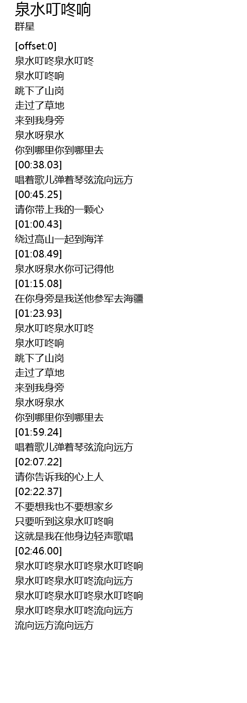 | [02:52.93] | 泉水叮咚泉水叮咚泉水叮咚响 |