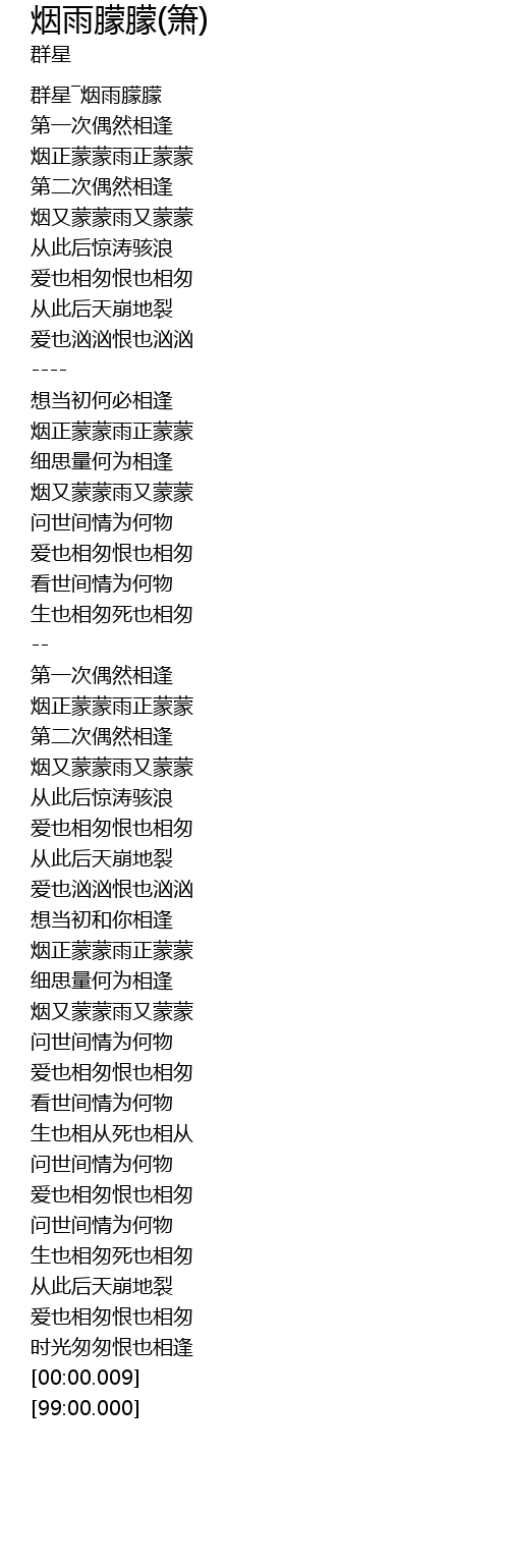 | [02:45.15] | 烟又蒙蒙雨又蒙蒙 |
