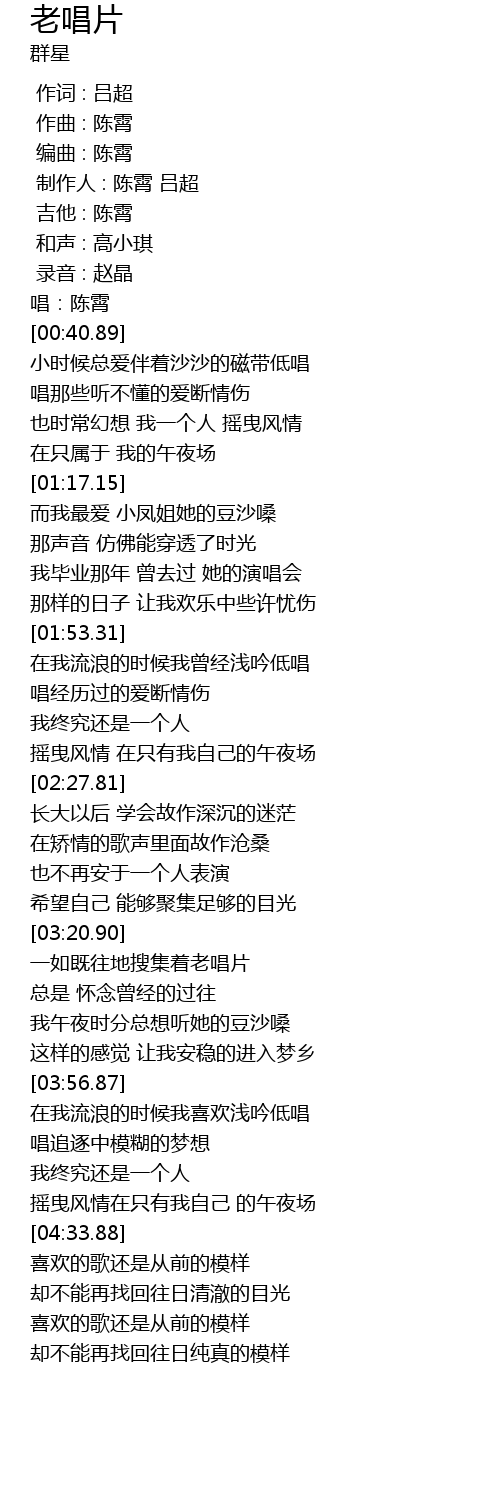| [00:03.00] | 唱:陈霄 |
