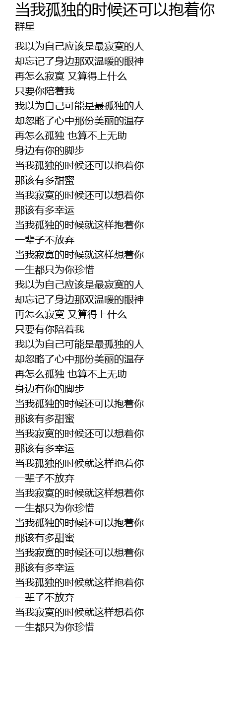 | Song | 当我孤独的时候还可以抱着你 |