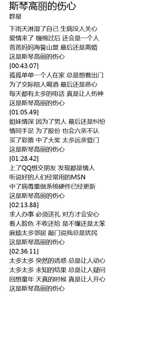 | [00:38.86] | 这是斯琴高丽的伤心 |