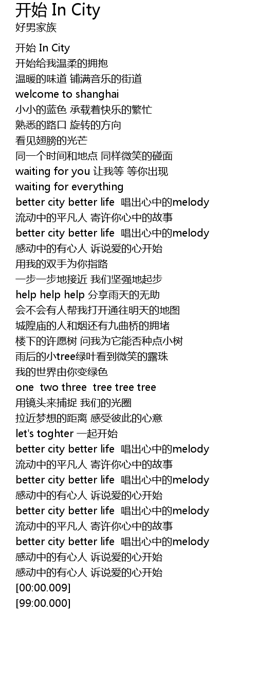 | [01:35.73] | better city better life 唱出心中的melody |