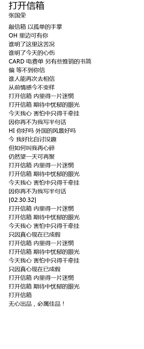 | [02:33.15] | 打开信箱 内里得一片迷惘 |