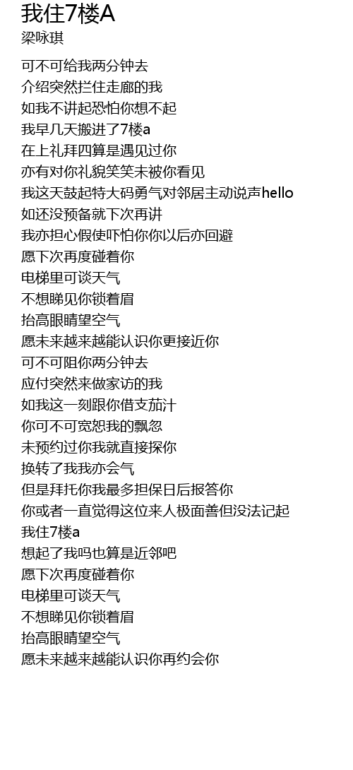 | [02:12.02] | wǒ zhù 7 lóu a |