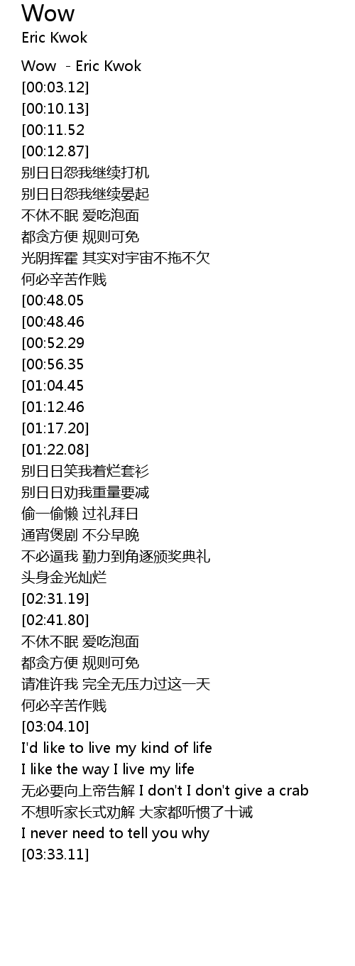 | [00:00.58] | Wow Eric Kwok |
