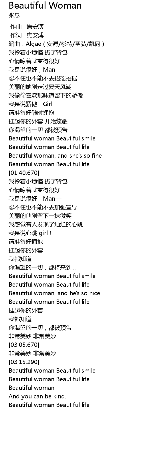 | [03:32.520] | Beautiful woman Beautiful life |