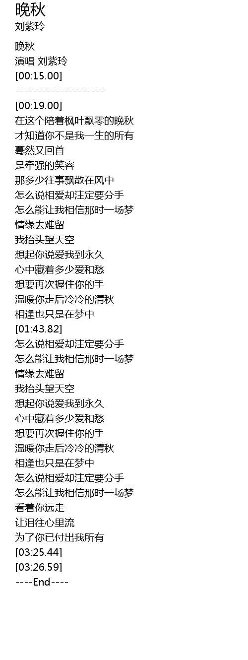 | [00:03.00] | 晚秋 |