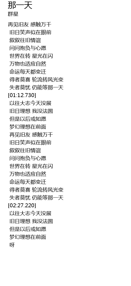| [02:20.190] | 失者莫忧 仍能等那一天 |
