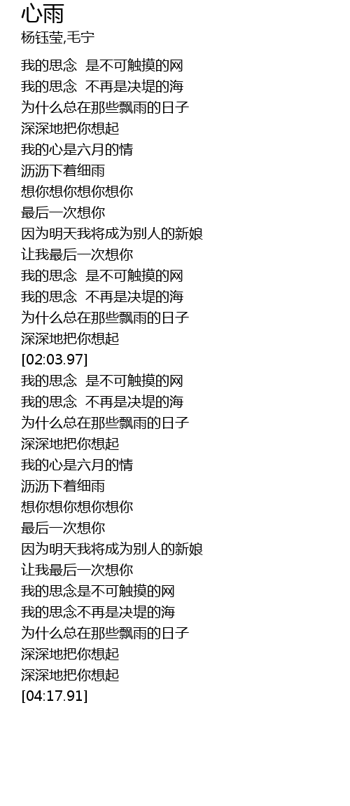 | [00:40.17] | 为什么总在那些飘雨的日子 |