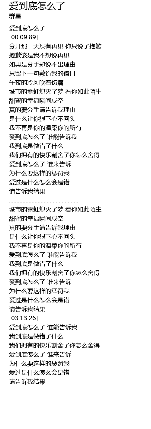 | [03:14.26] | 爱到底怎么了 谁能告诉我 |