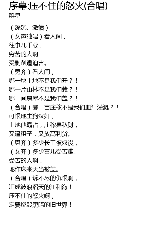 | [01:25.391] | (合唱)哪一亩庄稼不是我们血汗灌溉?! |