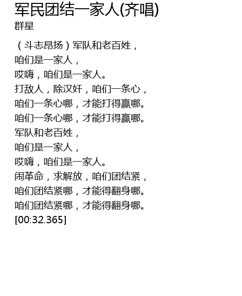 | [00:22.934] | 闹革命,求解放,咱们团结紧, |
