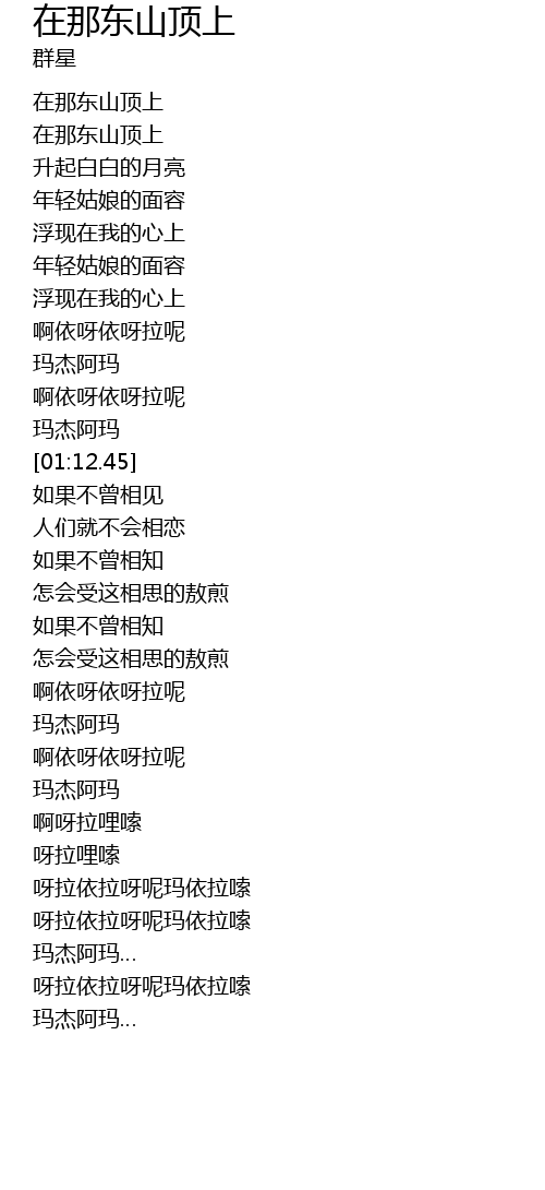| [00:00.00] | 在那东山顶上 |