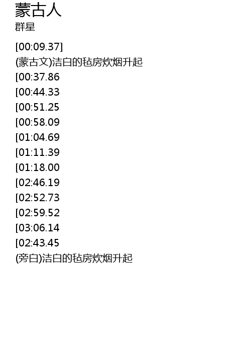 | [00:30.86] | (蒙古文)洁白的毡房炊烟升起 |