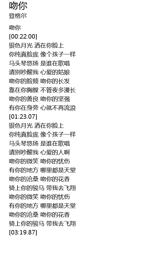 | [00:54.32] | 吻你的脸颊 吻你的长发 |
