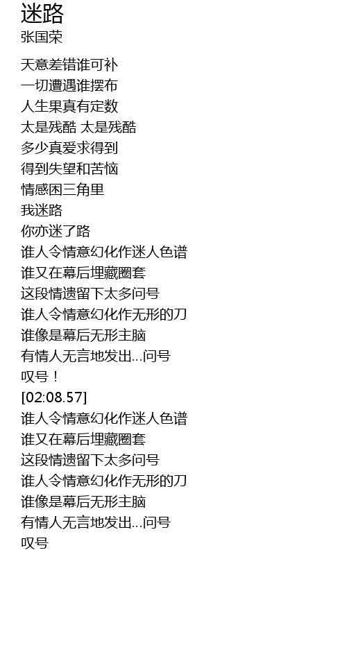 | [01:08.98] | 你亦迷了路 |