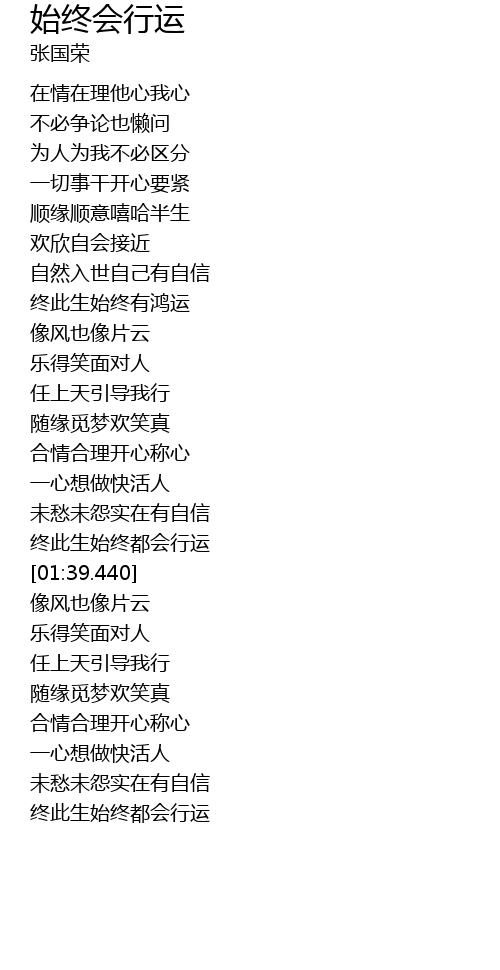 | [01:30.830] | zhōng cǐ shēng shǐ zhōng dōu huì xíng yùn |