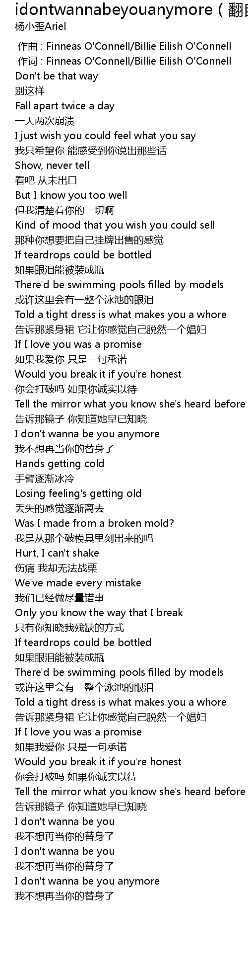 | Song | idontwannabeyouanymore(翻自 Billie Eilish) |
