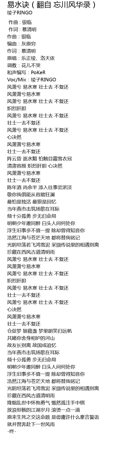 | [02:38.933] | fēng xiāo xiāo xī yì shuǐ hán |