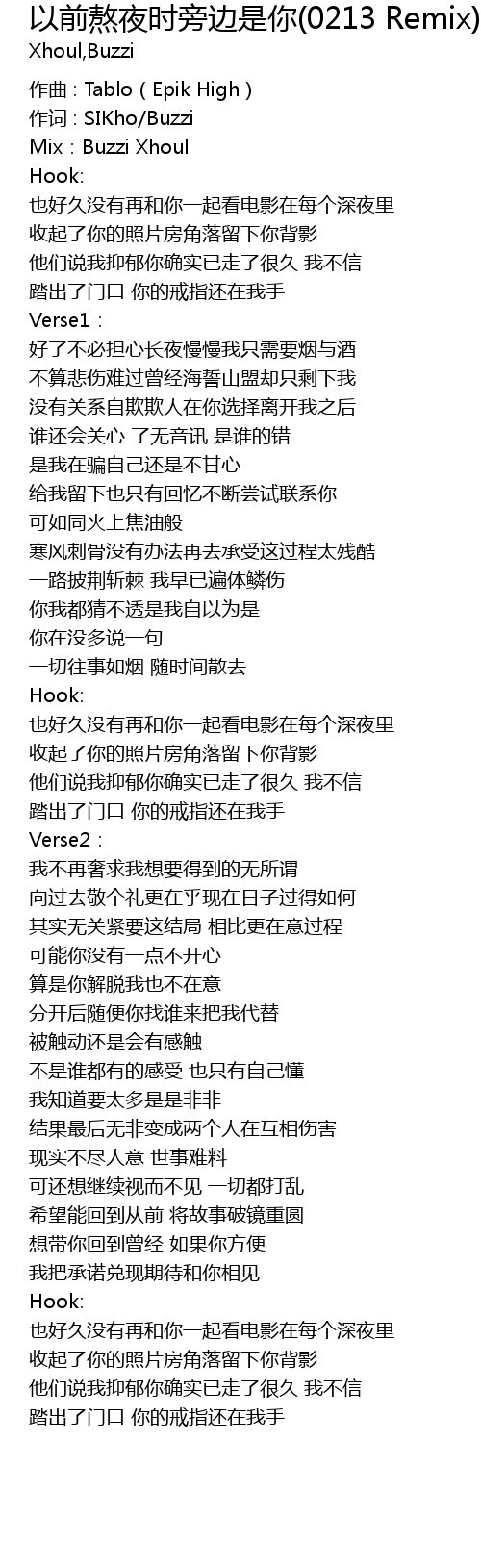 | hǎo liǎo bù bì dān xīn cháng yè màn màn wǒ zhǐ xū yào yān yǔ jiǔ | |