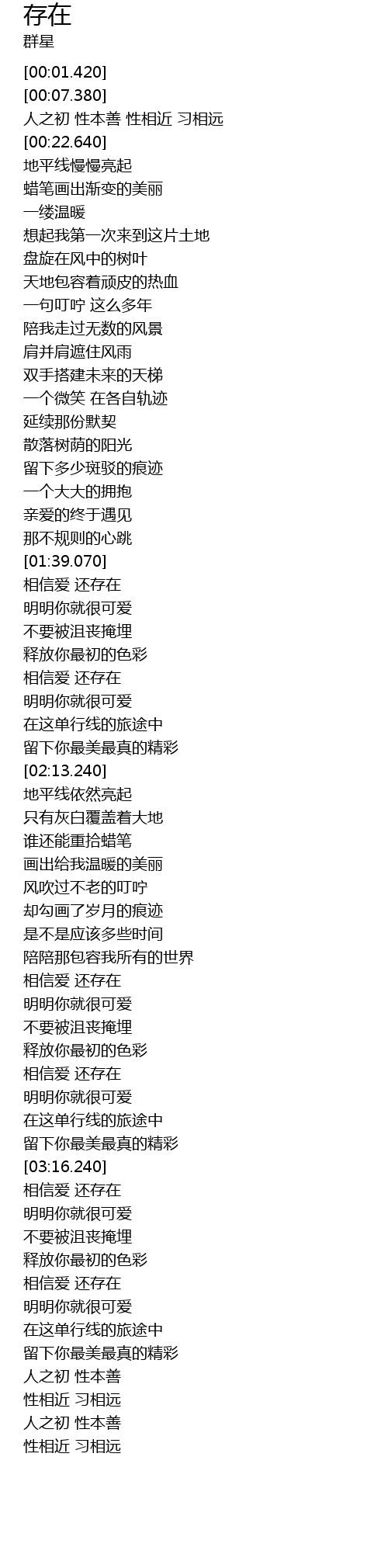 | [02:43.920] | xiāng xìn ài hái cún zài |