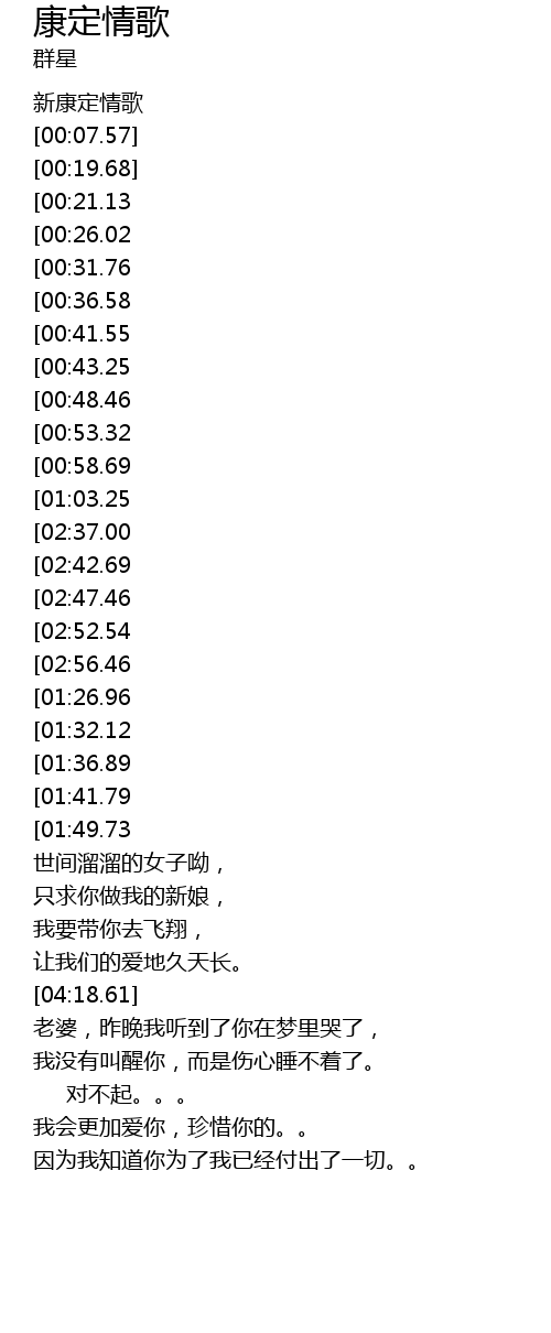 | [00:04.05] | xīn kāng dìng qíng gē |