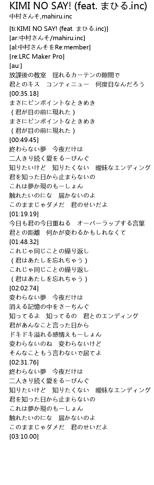 | [ti:KIMI NO SAY! (feat. まひる.inc)] | |