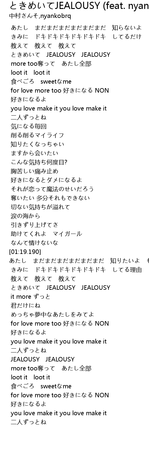| [01:39.741] | ときめいて JEALOUSY JEALOUSY |