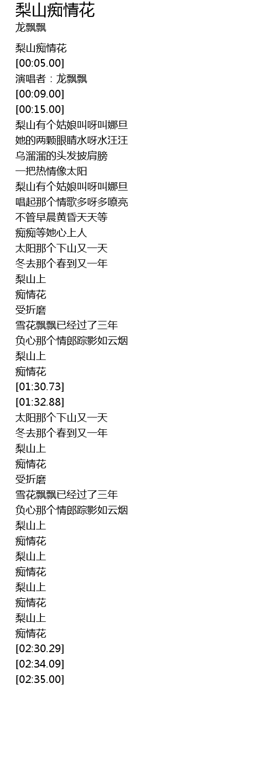 | [00:30.78] | 梨山有个姑娘叫呀叫娜旦 |