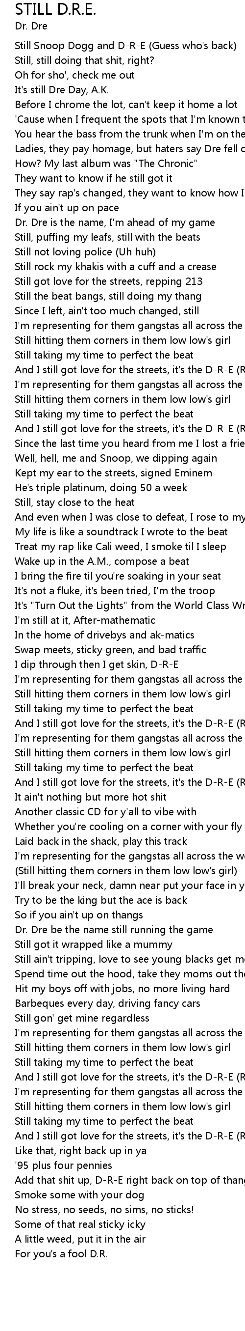 STILL D.R.E. Lyrics