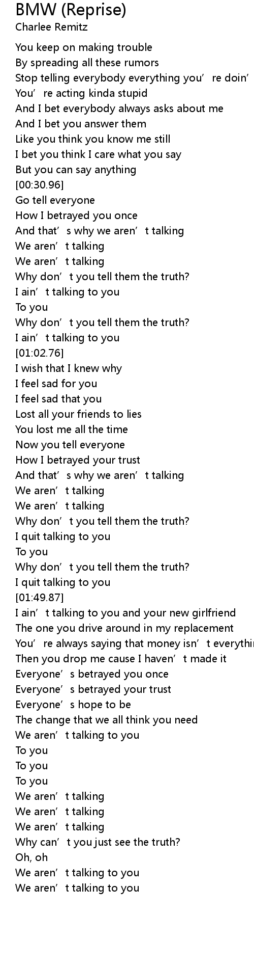 | [02:49.46] | We aren’t talking |