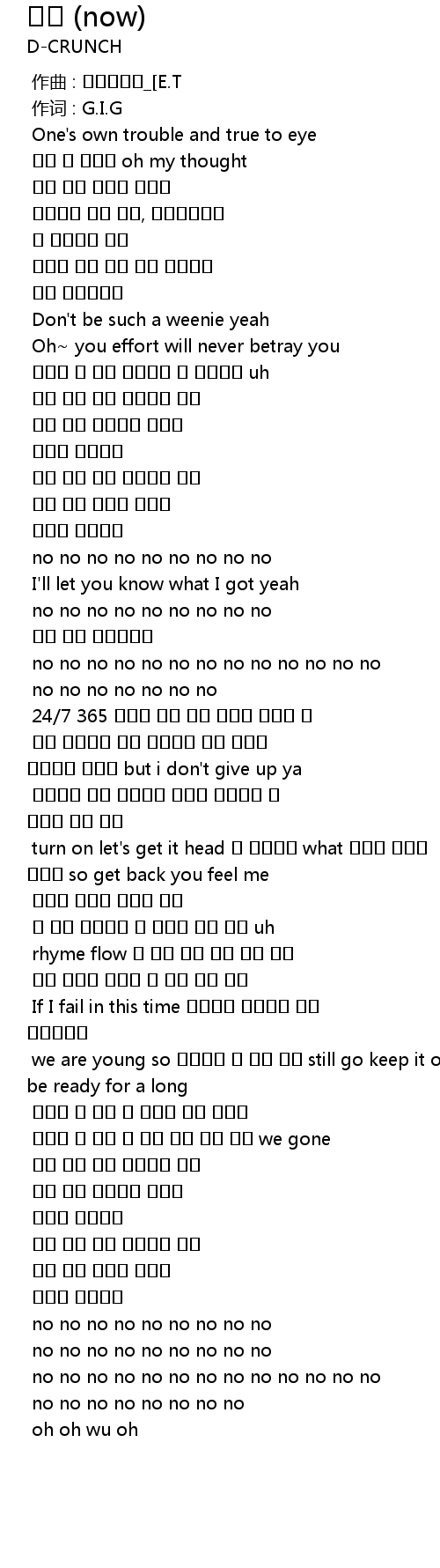 | [02:22.605] | 견뎌낼 수 있는 건 그래 지금 우리 지금 we gone |