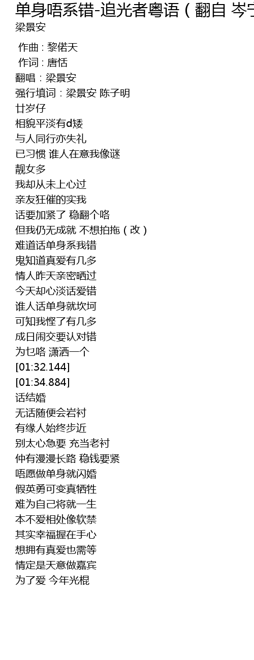 | [02:03.398] | 唔愿做单身就闪婚 |