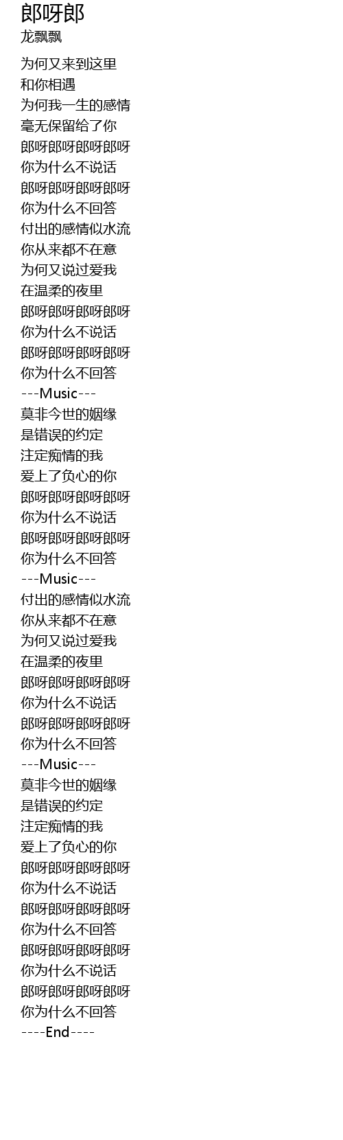 | [01:41.78] | 郎呀郎呀郎呀郎呀 |