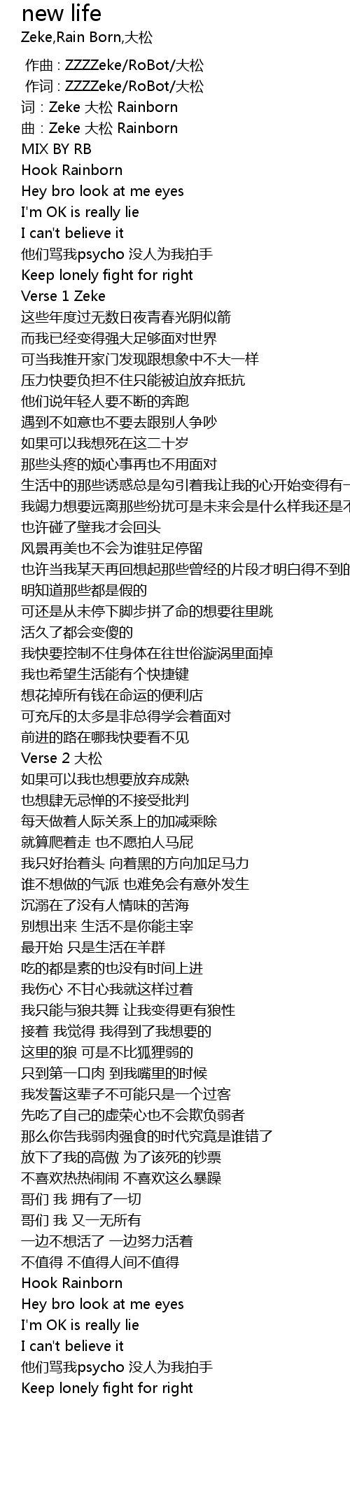 | [00:19.665] | cí: Zeke dà sōng Rainborn |