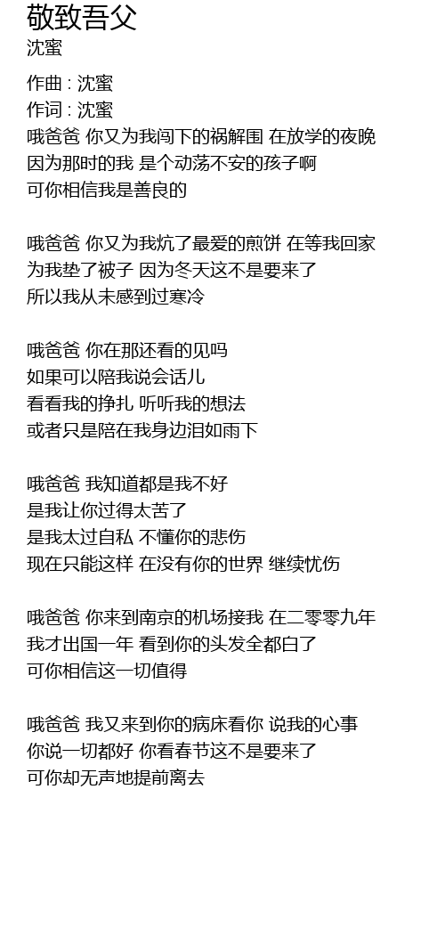 | 作词 : 沈蜜 | |
