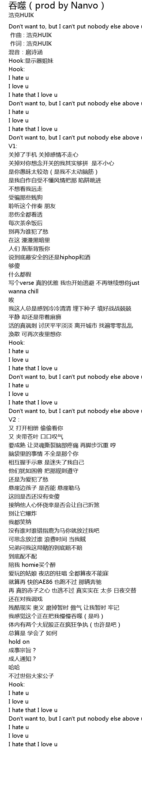 | [01:36.306] | Don't want to, but I can't put nobody else above u |
