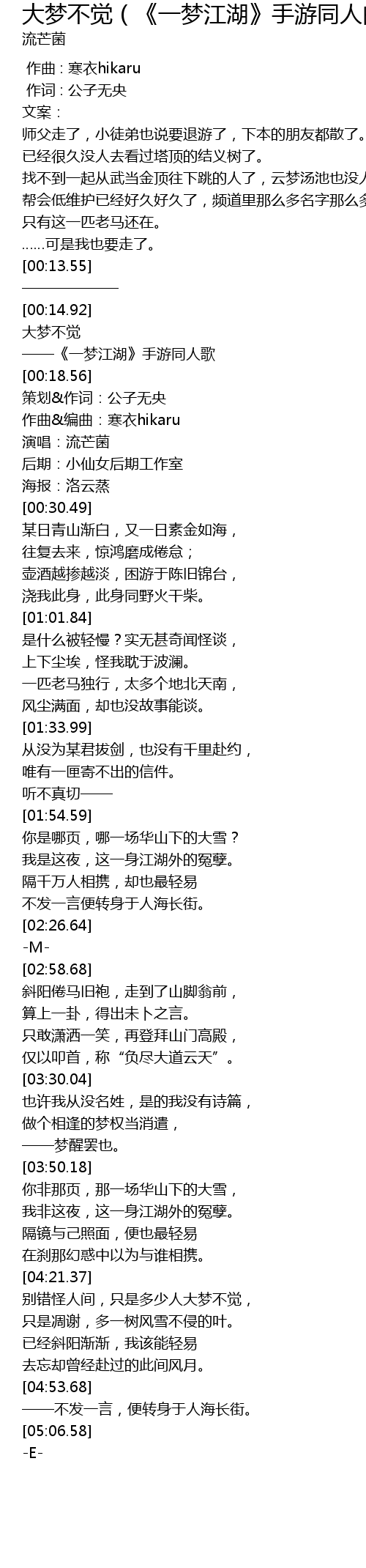 | [00:17.76] | ——《一梦江湖》手游同人歌 |
