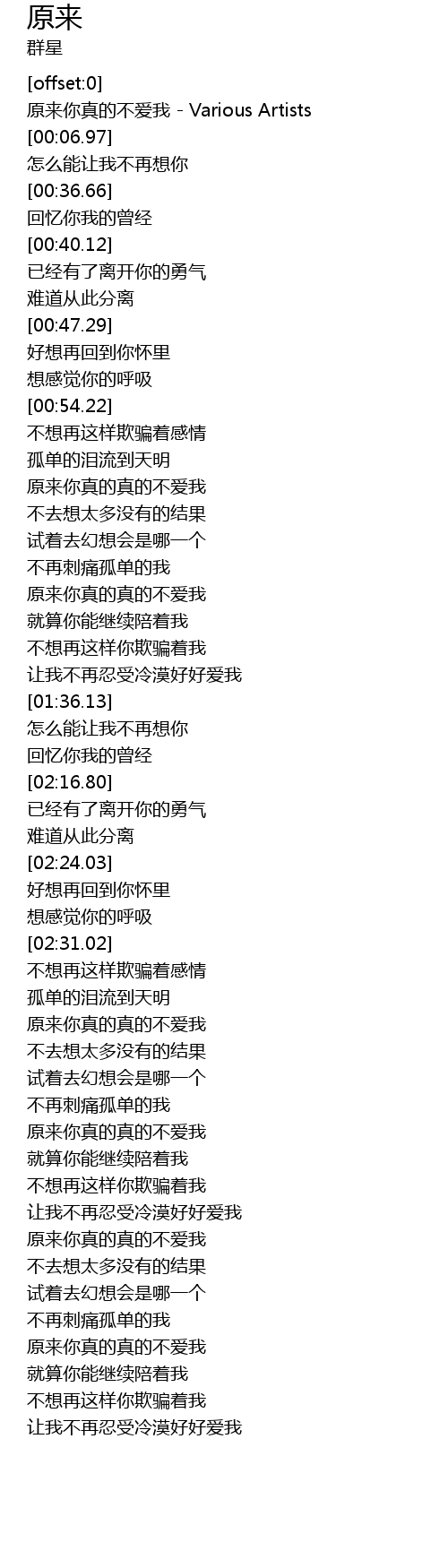 | [02:55.06] | 原来你真的真的不爱我 |