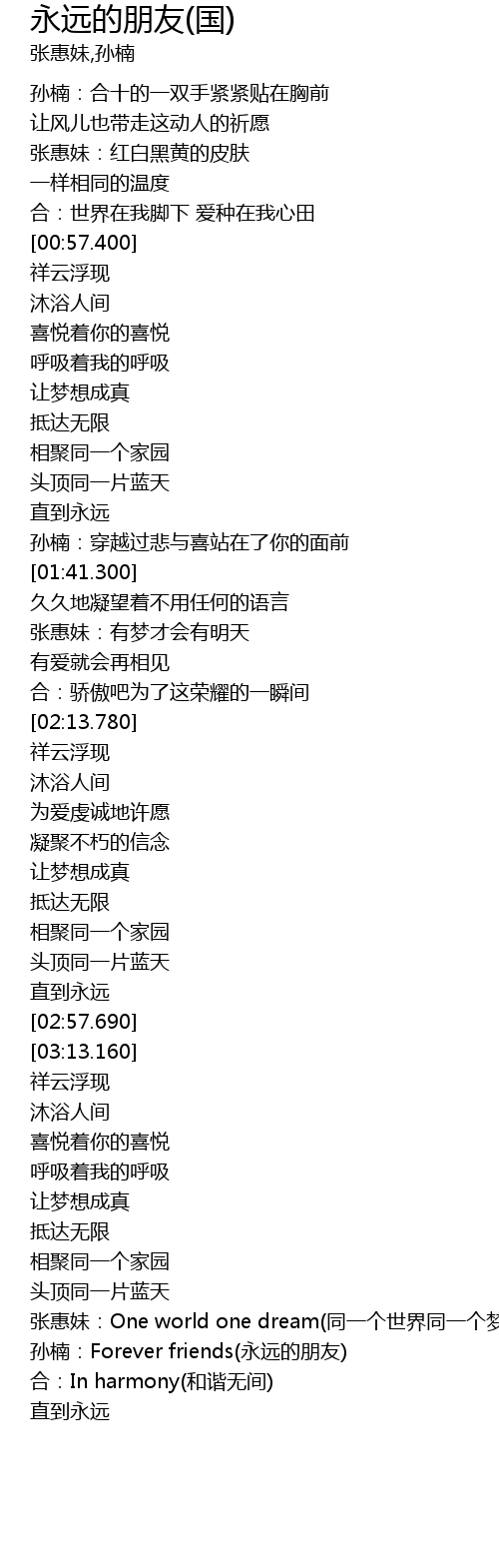 | [03:58.140] | sun nan: Forever friends yong yuan de peng you |