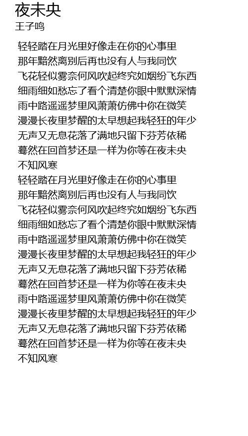 | [04:13.68] | 蓦然在回首梦还是一样为你等在夜未央 |