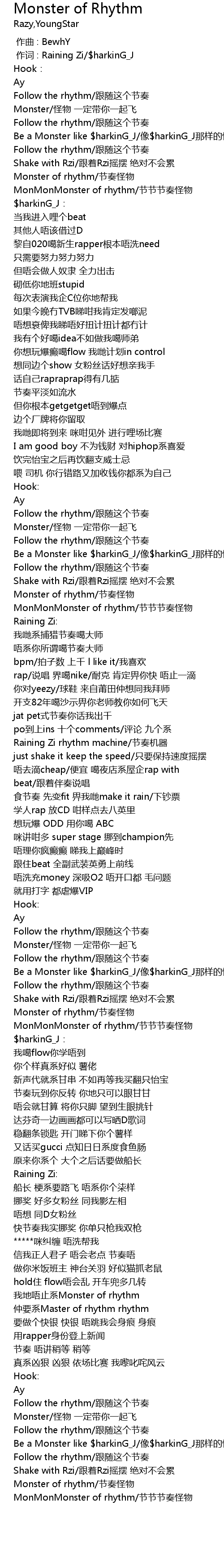 | [01:34.756] | Monster of rhythm/节奏怪物 |