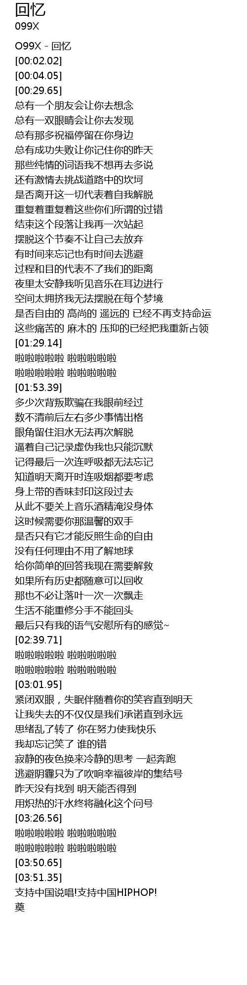 | [00:00.48] | O99X - 回忆 |