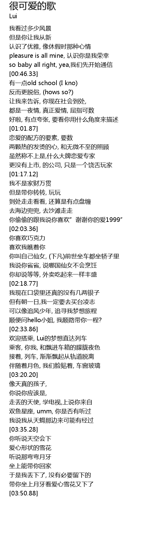 | [01:58.72] | 你偷偷的跟我说你喜欢”谢谢你的爱1999” |