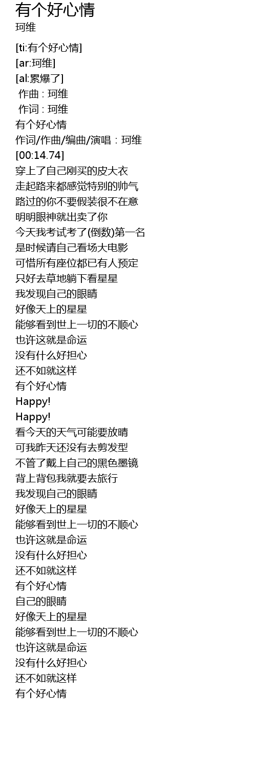 | [00:02.39] | yǒu gè hǎo xīn qíng |