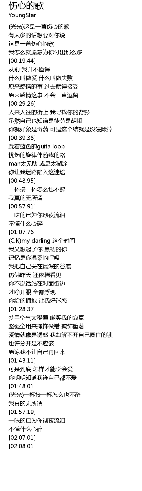 | [00:09.04] | (光光)这是一首伤心的歌 |
