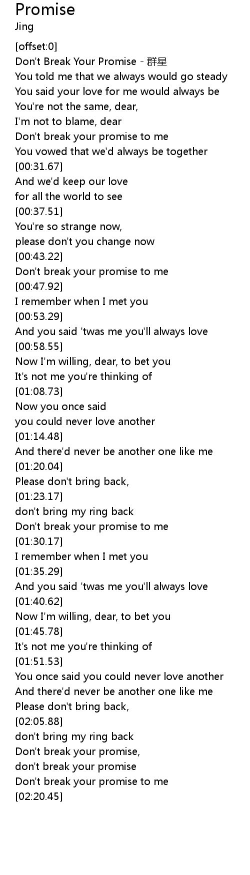 | [00:00.72] | Don't Break Your Promise - 群星 |